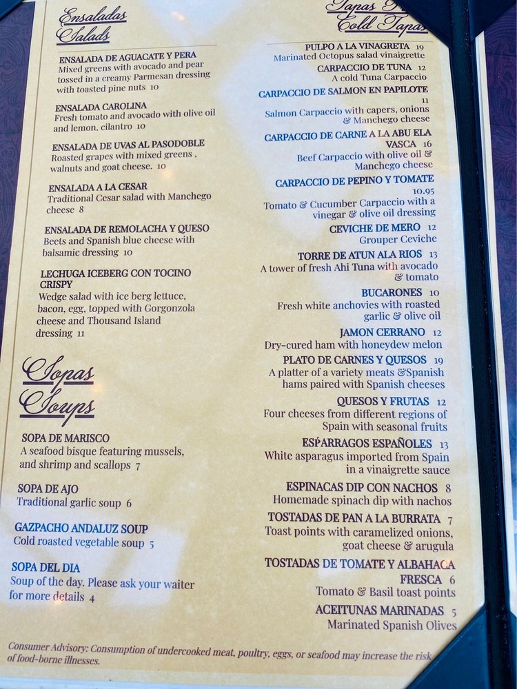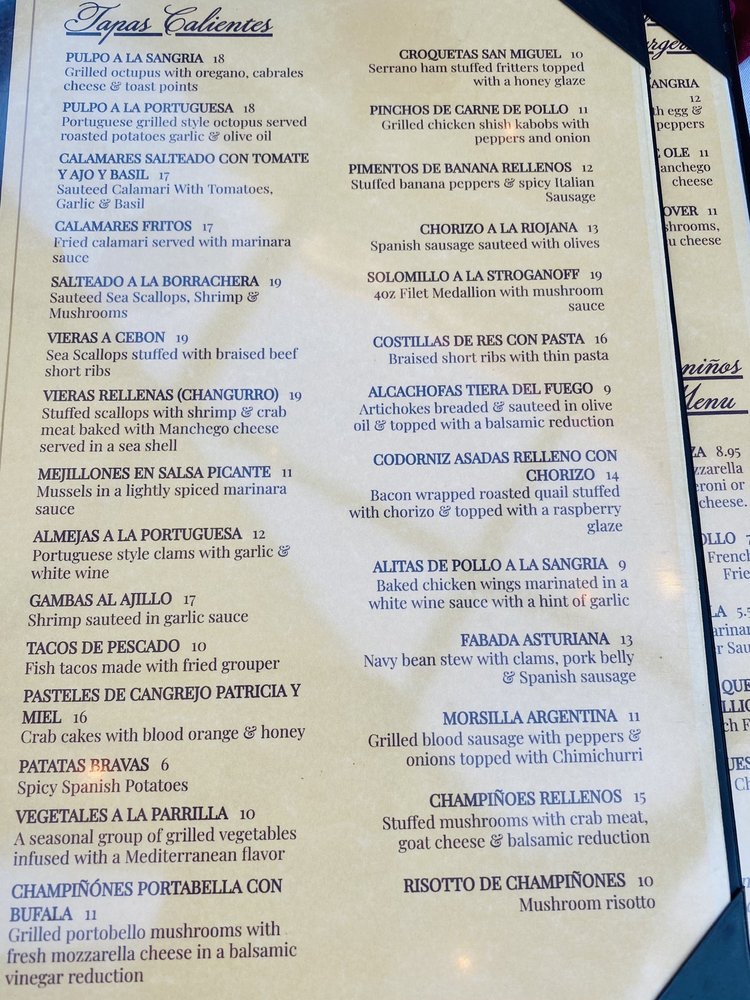 Sangria Y Tapas Menu